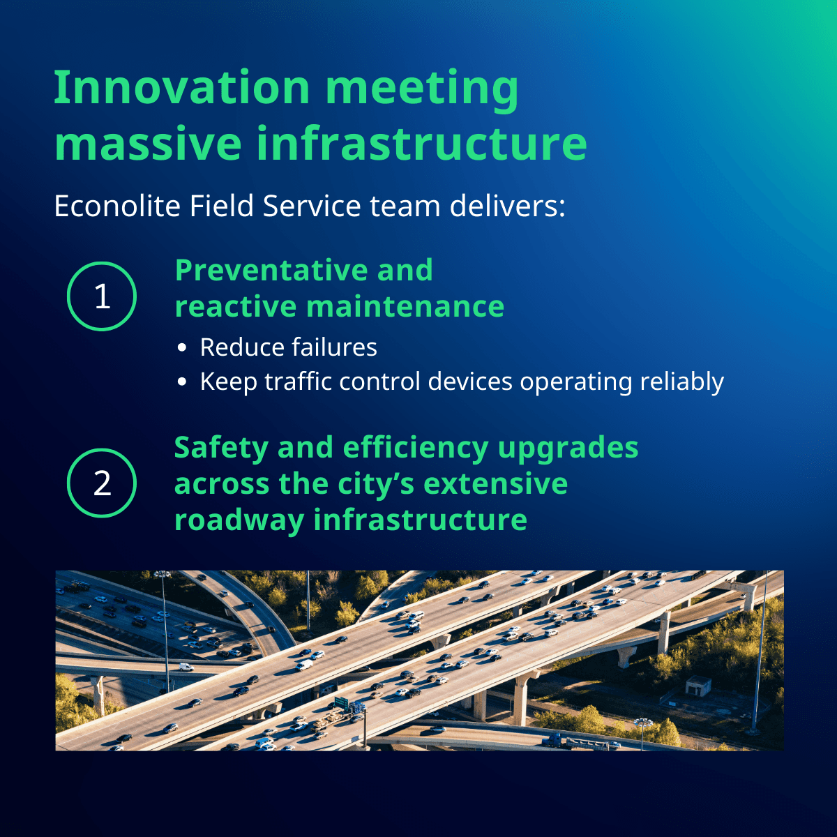 Econolite creates end-to-end smart traffic solutions for products and services including engineering, production, and maintenance. Products include software, detection hardware, controllers and cabinets in traffic management.